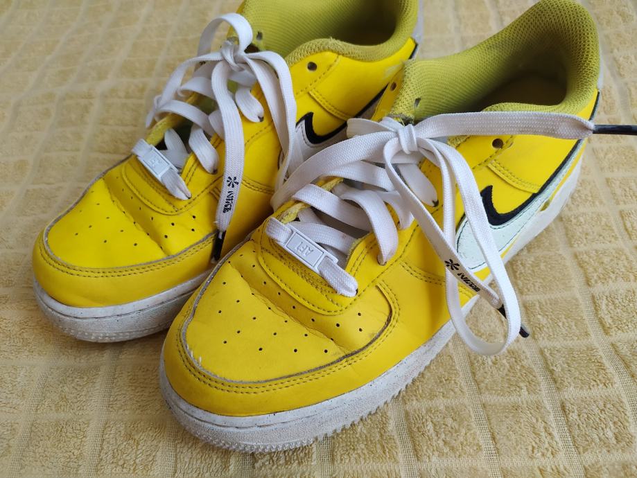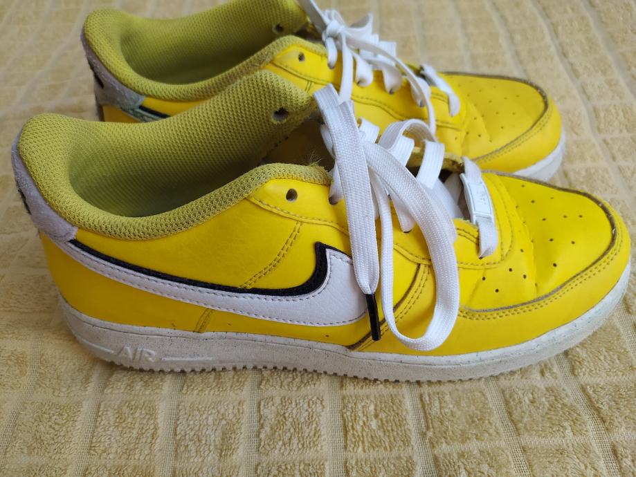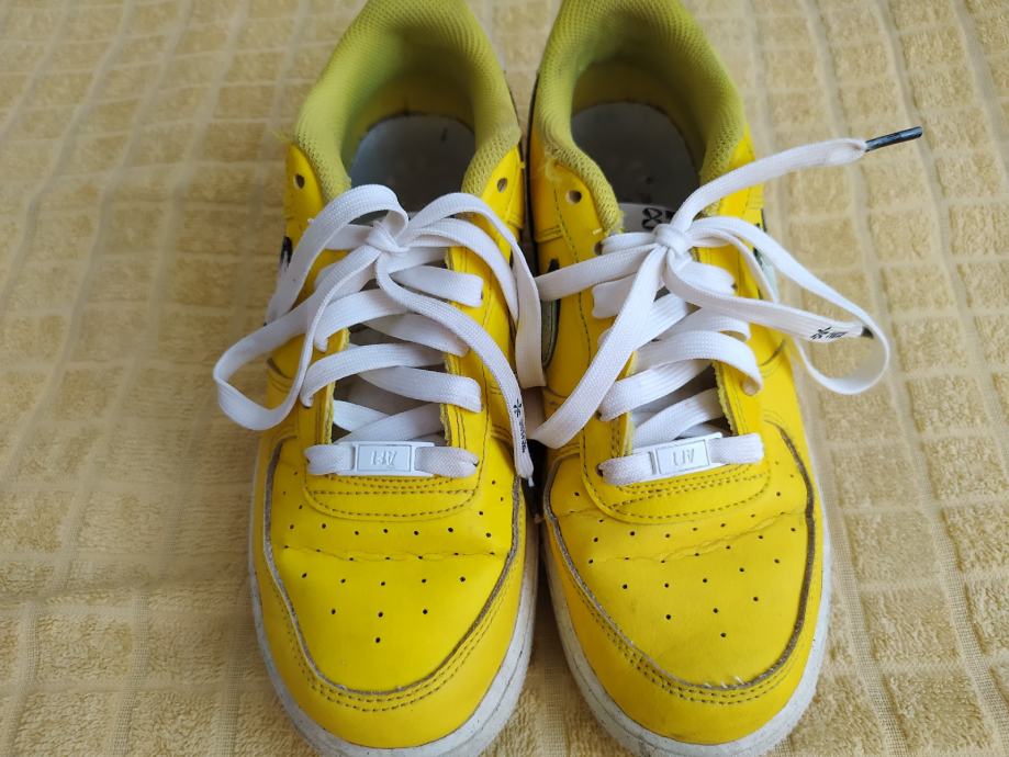 Tenisie ženske "Nike" br 40. Žuta boje s bijelom nike znakom, bijela unutrašnjost, bijelim vezicama. Gornjište je od kože/textila, unutarnji dio je textil, tabanica guma. Lagane udobne patike za outdoor aktivnosti. Potpuno nove nikada nošene.