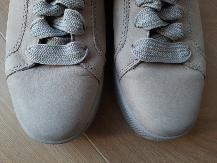 Nemaju nikakvih oštećenja. Nošenje minimalno vidljivo na pregibu kože kod prstiju i oko gležnja. Pokoja točkica mrlje na prstima koju nisam probala odstraniti.