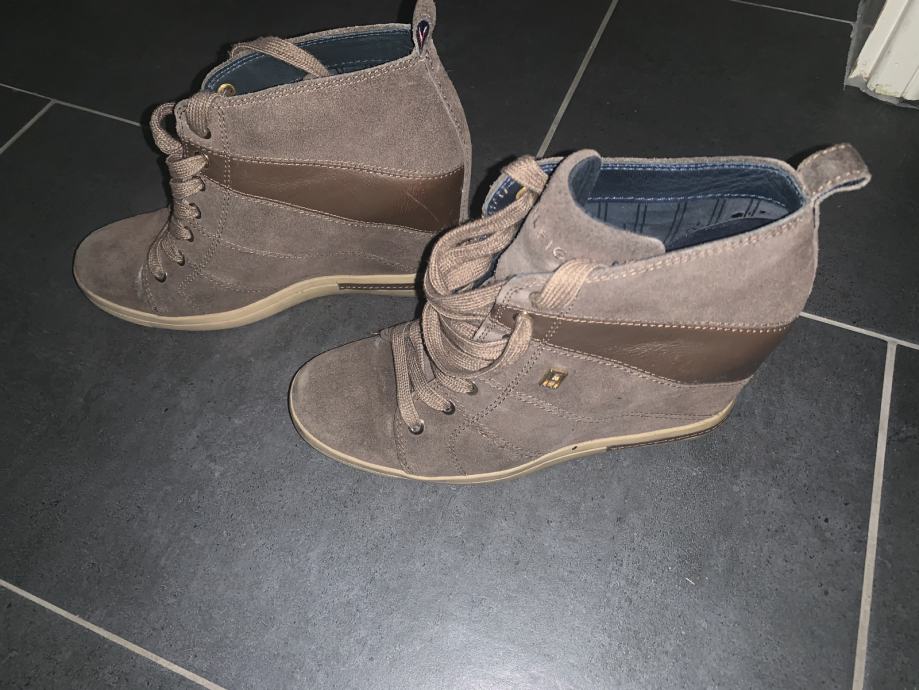 Smeđe Tommy Hilfiger tenisice na petu. Kao nove bez oštecenja. Nošene jedno proljece. Veličina 38.