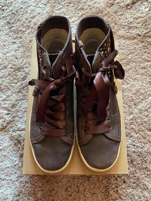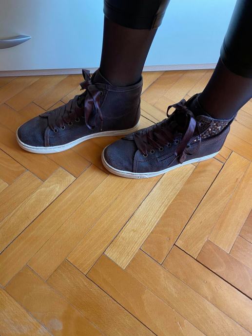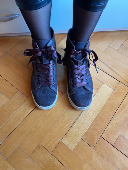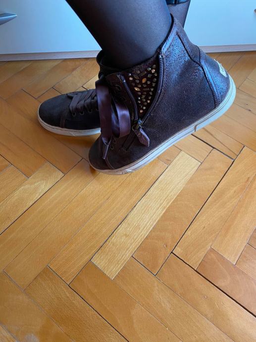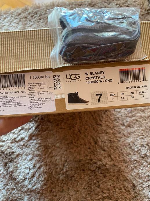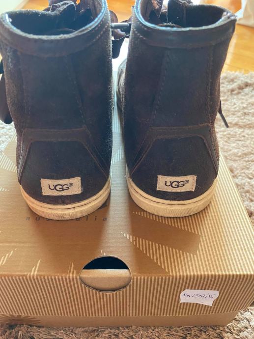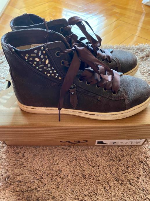 UGG ženske tenisice smeđe boje s dvije vrste vezice, od toga jedne vezice nikad korištene. Sastrane ukrašene Swarovski kristalićima. Namijenjene za suho vrijeme. Plaćene 1300kn. Iznošene su (stoga je i cijena dosta snižena). Za vise info zvati dolje navedeni DODATNI broj.