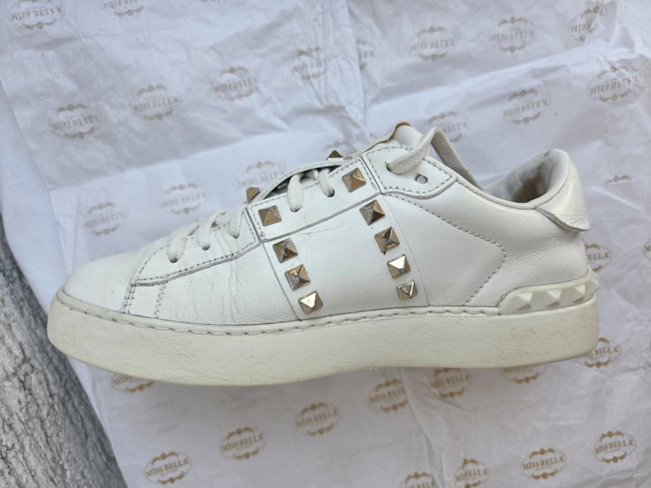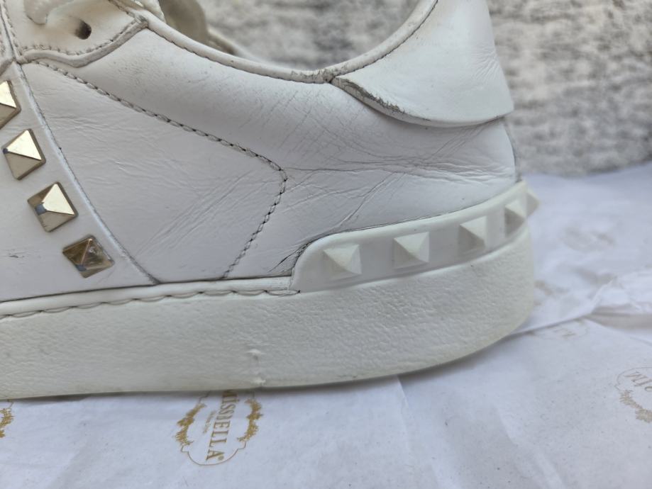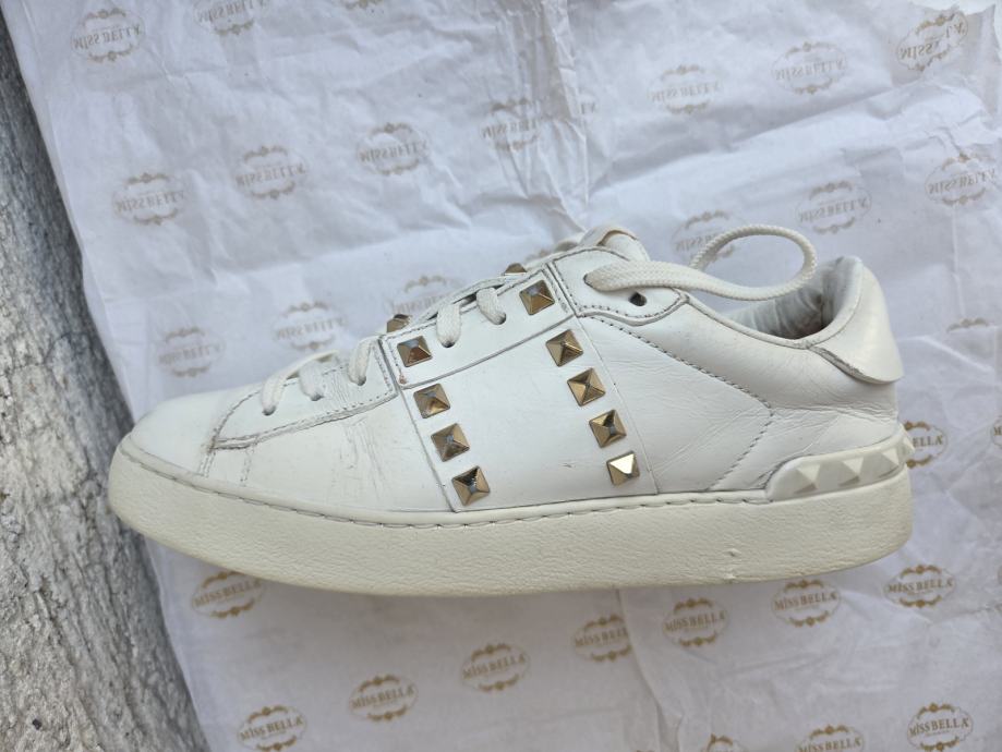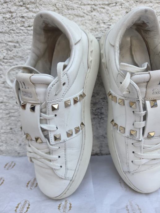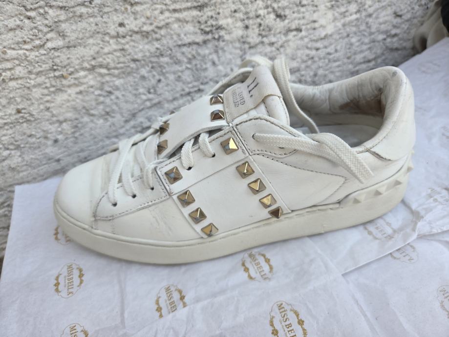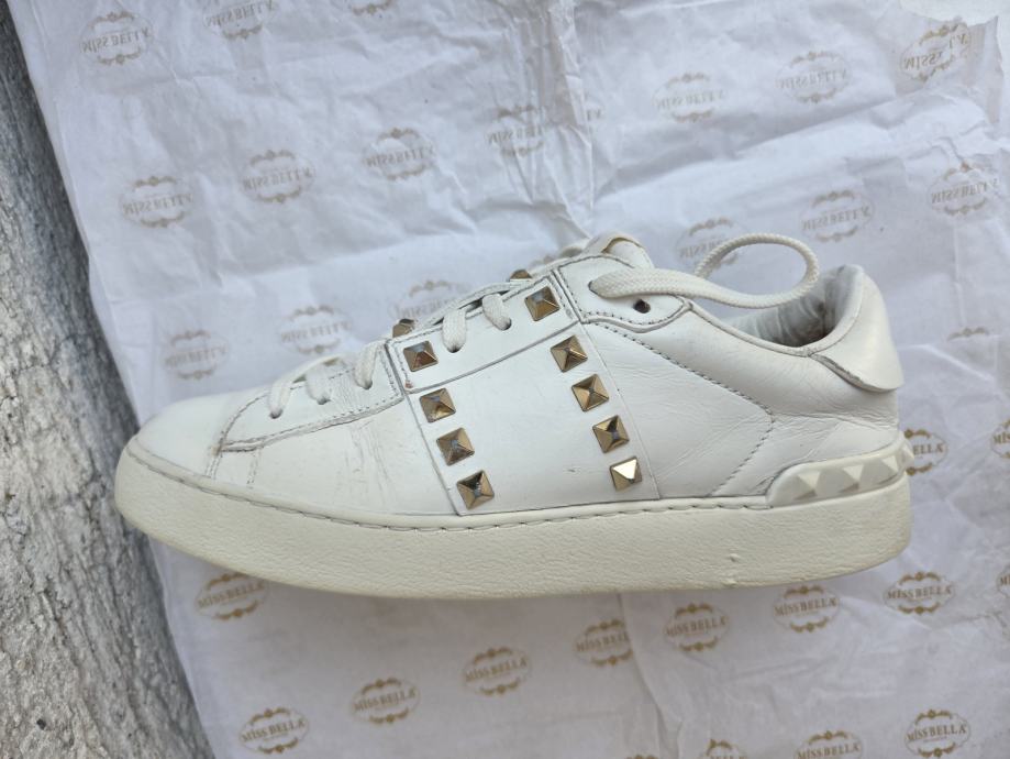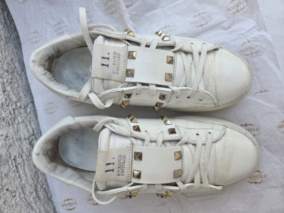 Valentino Rockstud Untitled ženske tenisice EUR 37 made in Italy.- ser. broj za provjeru autentičnosti je TNA01- dosta ih ima na eba-u...Čvrste su - nedostatci- malo ožuljani vanjski rubovi petnog dijela na đonovima, djelomično obrisan lak sa petnog dijela interijera, ostalo je sve OK - koža nije oštećena nigdje, prošivi na spoju đonova i gornjišta čvrsti, uložak nije puknut, lak stabilan.......nove su preko 600 eura......pogledajte i ostale moje oglase