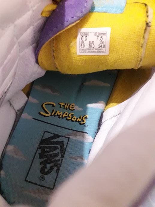 Prodajem malo nošene Vans tenisice s motivom Lise Simpson u ljubičastoj boji. Ove jedinstvene tenisice su veličine 38, s prepoznatljivim žutim vezicama koje savršeno nadopunjuju dizajn. Visoki model je u dobrom stanju i idealan za sve obožavatelje The Simpsons crtića.