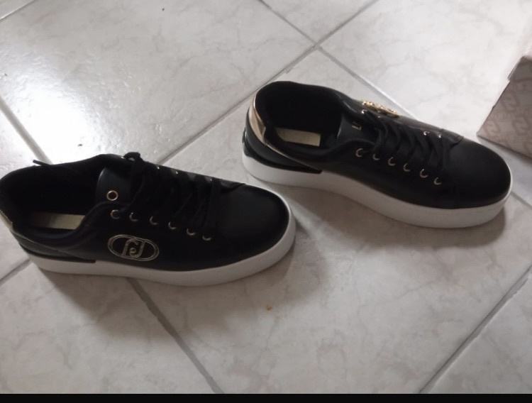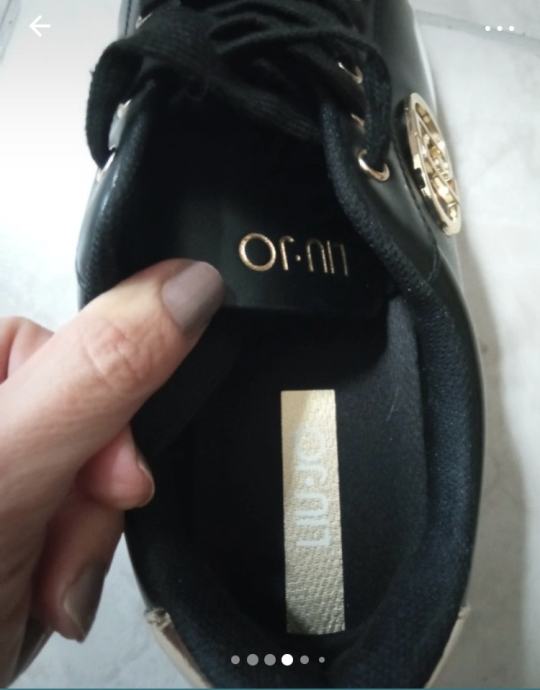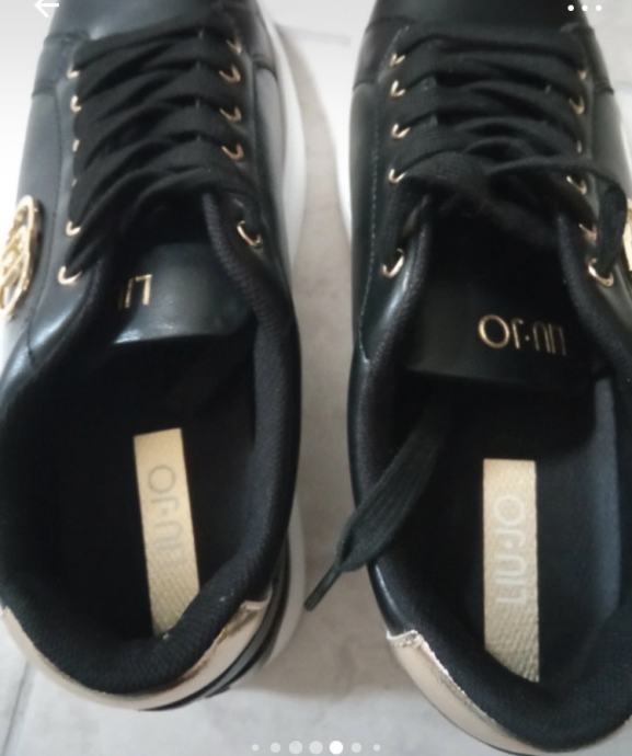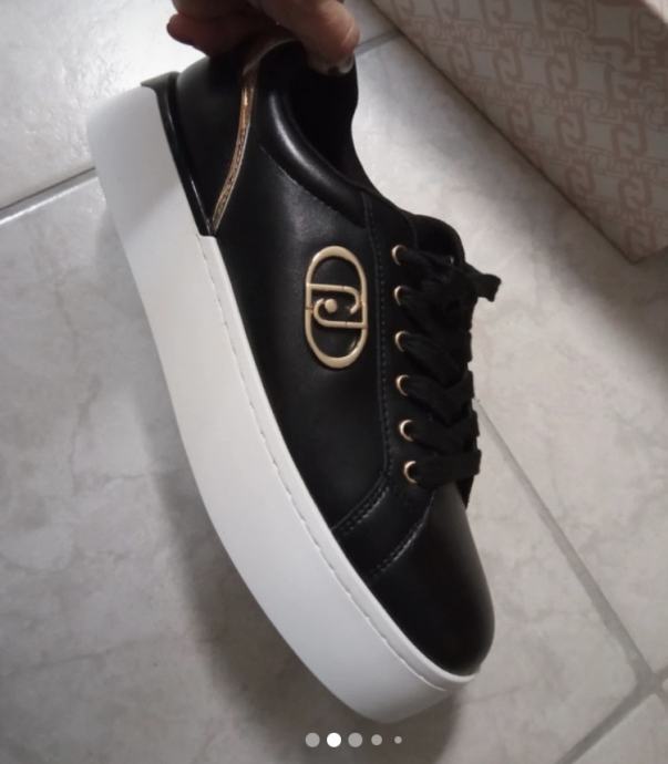 Prodajem nove ženske tenisice Liu Jo s etiketom, veličina 38. Crne su boje s elegantnim zlatnim detaljima – zlatnim perforiranim rupicama za vezice, zlatnim logom na bočnoj strani te zlatnim ukrasom na peti. Đon je bijeli, a unutrašnjost je crna s Liu Jo natpisom u zlatnoj boji. Ravnog su đona, bez pete.