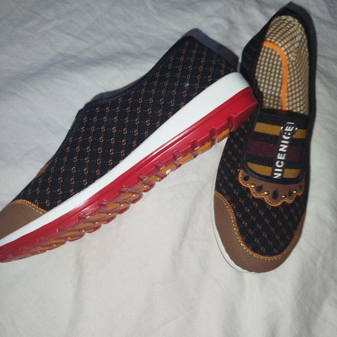 Nove ženske sportske cipele od platna u smeđoj boji, veličine 39. Udobne i lagane tenisice bez pete, idealne za svakodnevno nošenje. Cipele su u odličnom stanju, bez etikete.