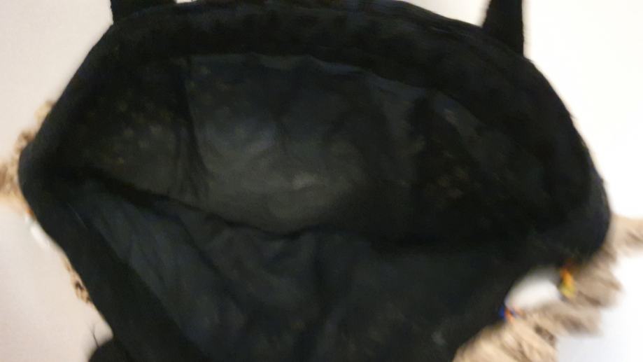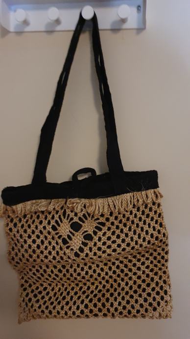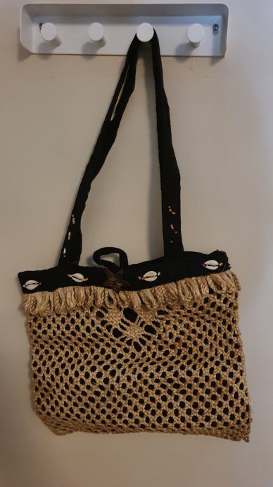 Prodajemo afričku pletenu torbicu sa ukrasima od školjaka i perlica. Pretpostavljamo da je iz Nigerije ili Ghane. U jako je dobrom stanju, neki dijeli kod ulaza su malo ocufani. Prilično je lagana za nositi i udobna na dodir. Dimenzije su 32 cm x 30 cm.