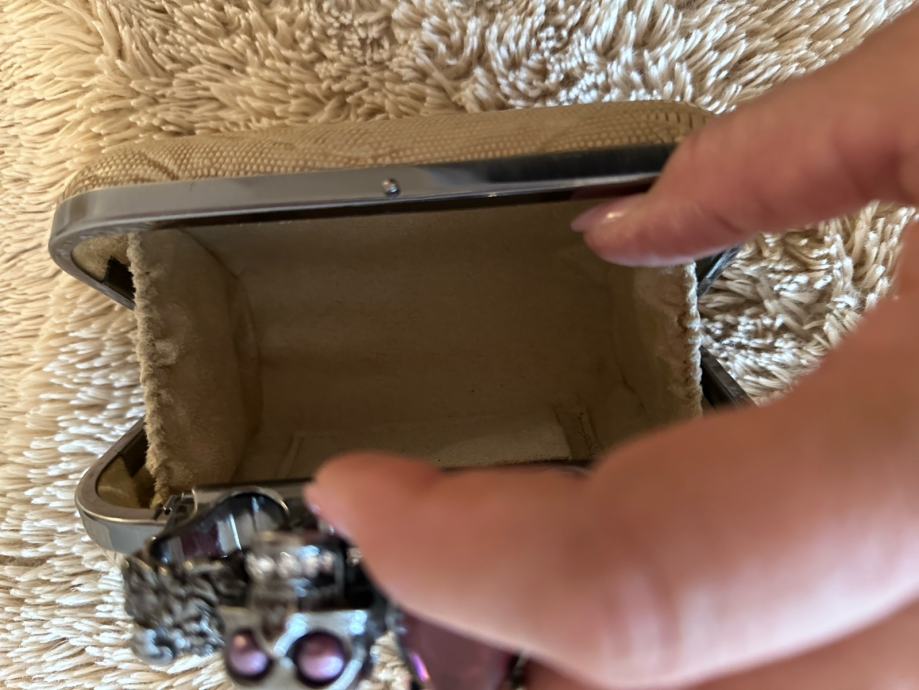 U odlicnom stanju, nosen samo nekoliko puta. Ima i metalni remen da se moze kao cross-body ili samo kao clutch nosit.