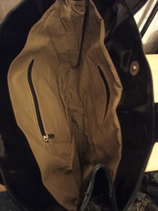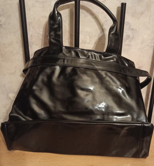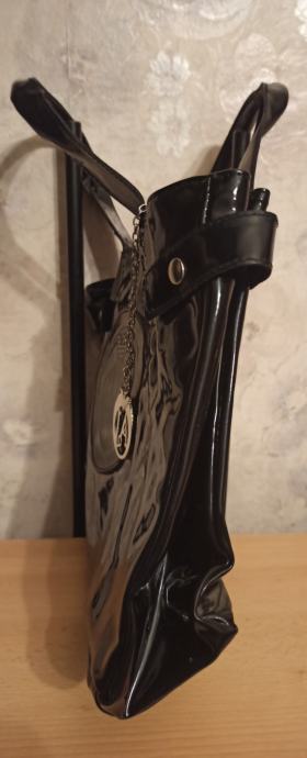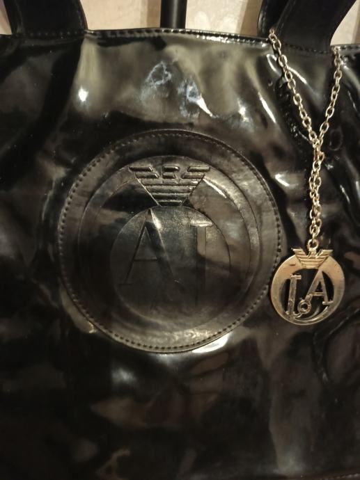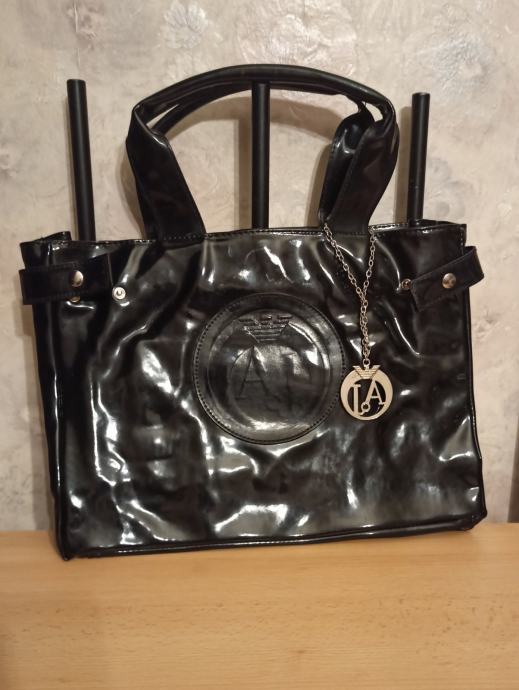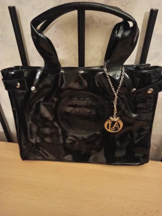 ARMANI JEANS ZENSKA TORBA CRNA LAKIRANA. JAKO ATRAKTIVNA. JAKO PUNO MJESTA ZA OSOBNE STVARI I OSTALE MANJE SITNICE. NA CLACK ZATVARANJE I UNUTRA IMA 2 MANJA PATENT PRETINCA NA ZATVARANJE. DIMENZIJE TORBE 37X28 CM. CIJENA 45 EURA. MOGUCNOST PLACANJA POUZECEM.