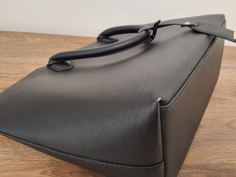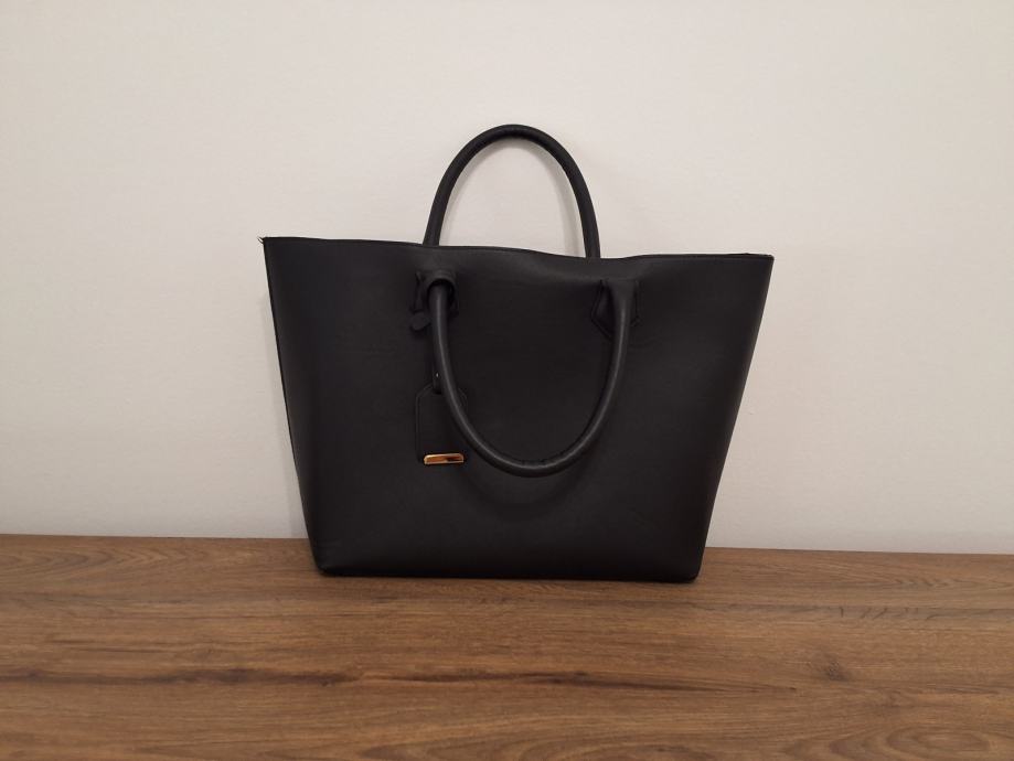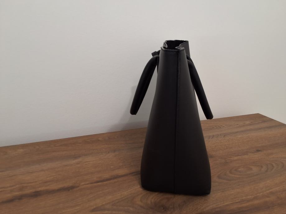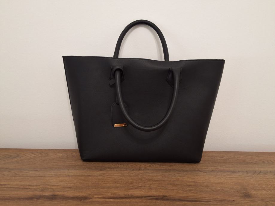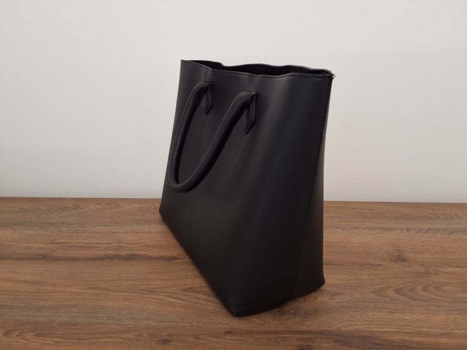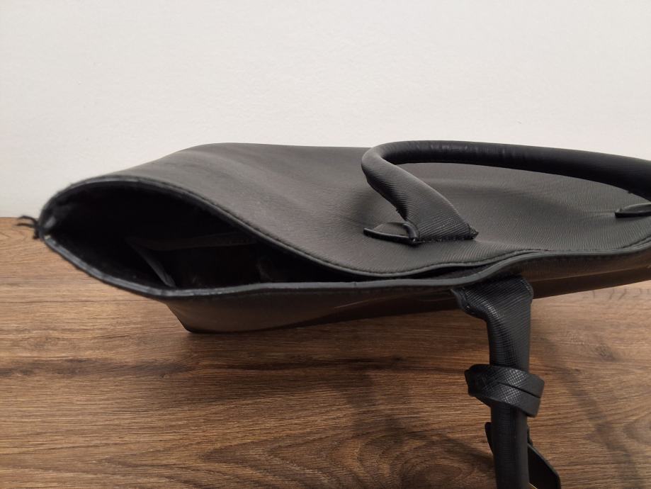 Crna torba, nošena, sa malim oštećenjim koja su vidljiva na zadnjim slikama.