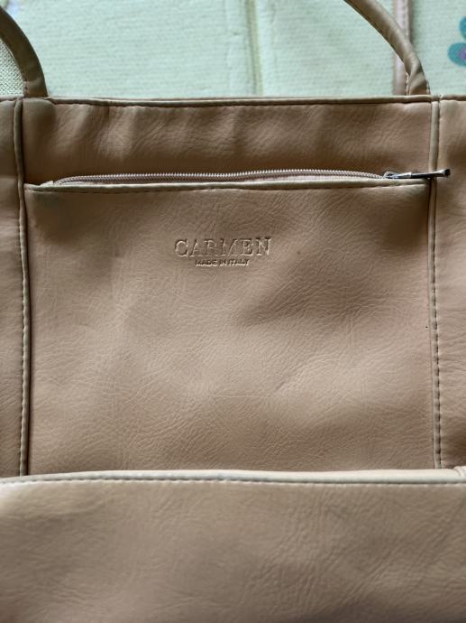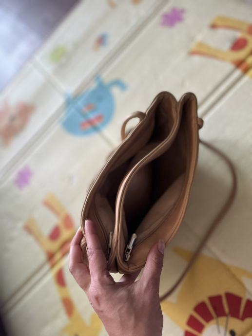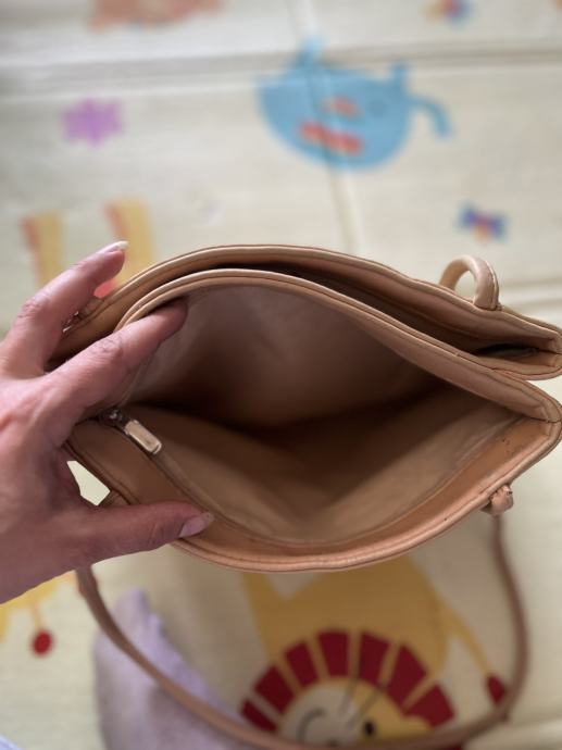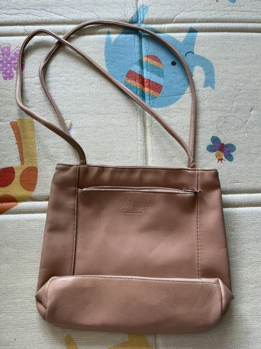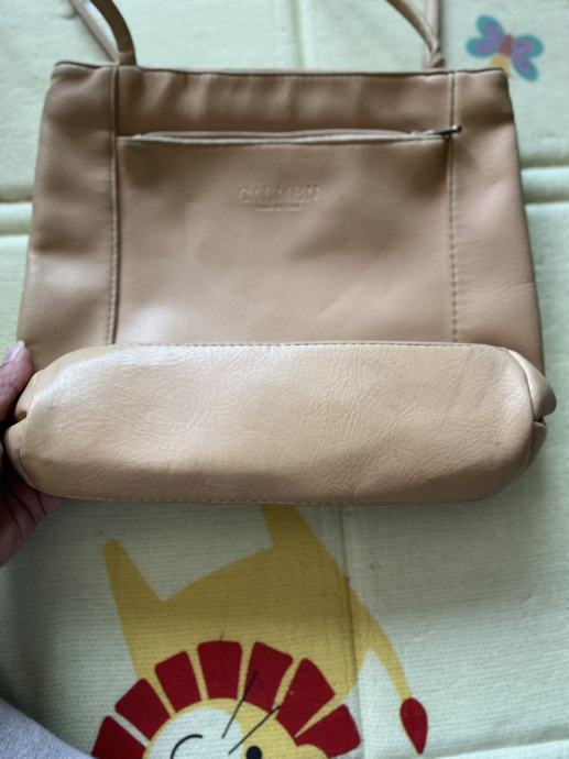 Carmen bež / svijetlo smeđa torbica za rame, sitni tragovi korištenja na dnu torbe, vidljivo sve na slikama.