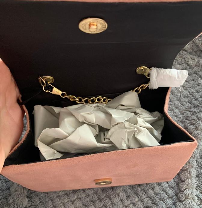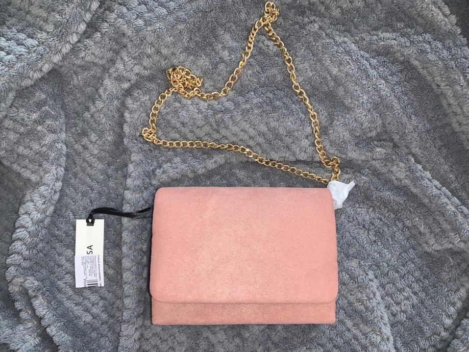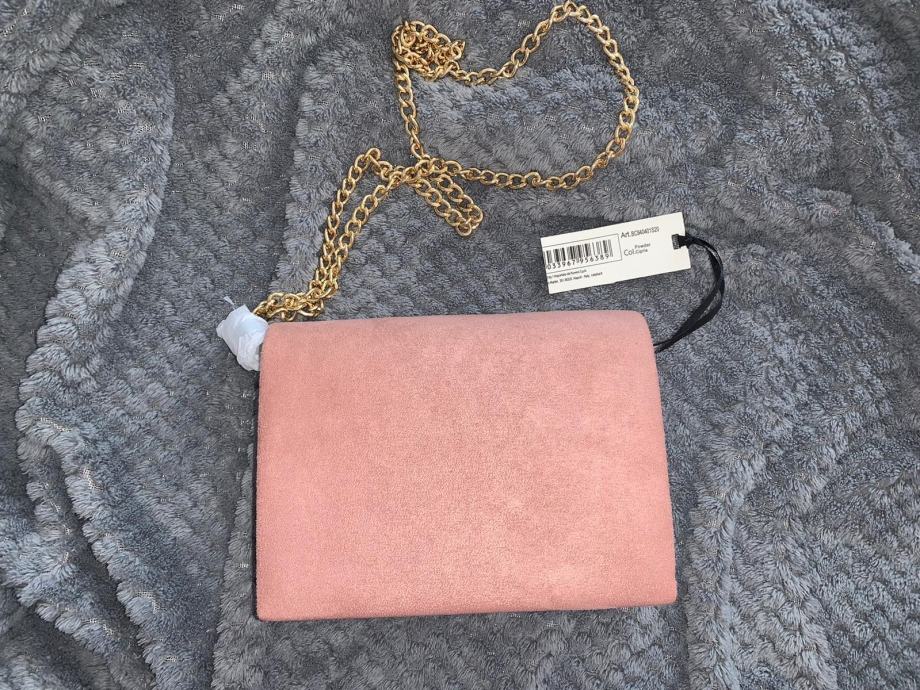 Potpuno nova elegantna ženska torbica prljavo roze boje od umjetne brušene kože.