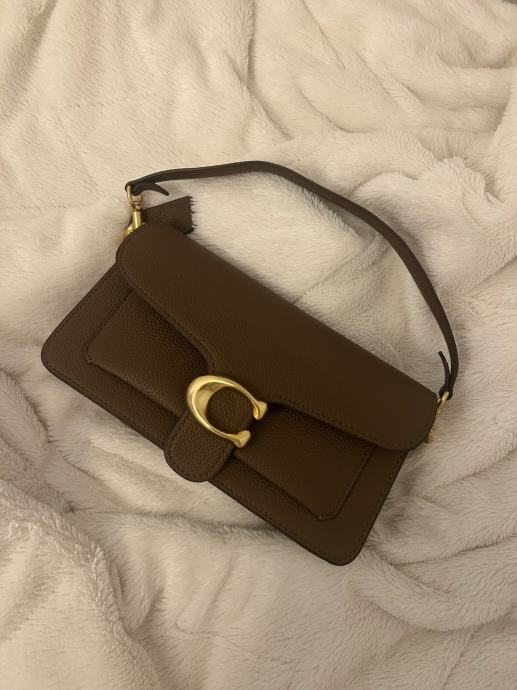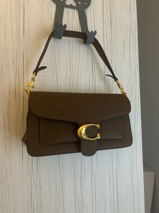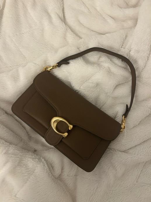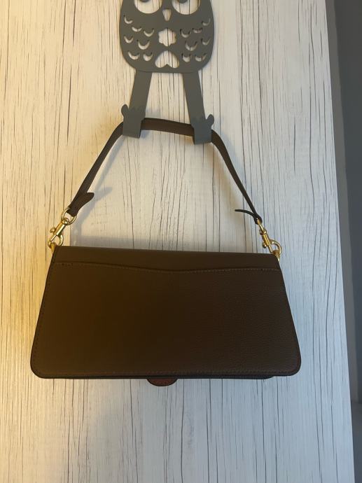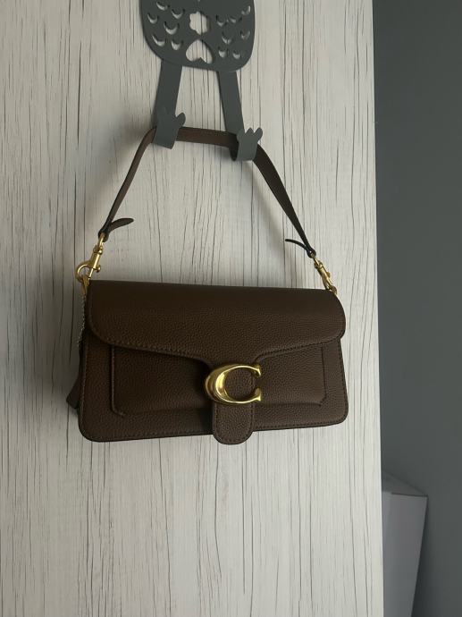 Prodajem Coach Tabby 26 torbicu u prepoznatljivoj smeđoj boji. Torbica ima karakterističnu C kopču u zlatnoj boji i pregib s jezičkom, što je prepoznatljiv dizajn ovog modela. Remen je podesiv i može se nositi preko ramena ili crossbody. Nova je, bez etikete.