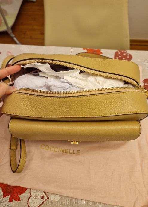 Prodajem novu, nikad nošenu, kožnu Coccinelle torbicu u bež boji, dimenzija 25×20×9 cm. Dolazi sa pripadajućom platnenom vrećicom za pohranu torbice. Razlog prodaje - torbica je prevelika za moje potrebe.
