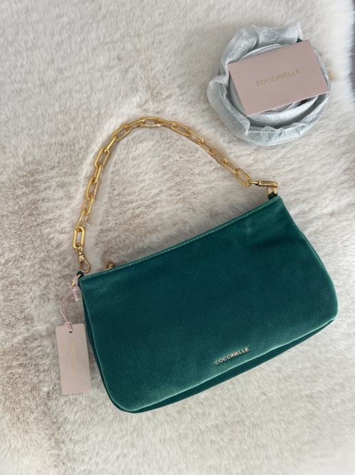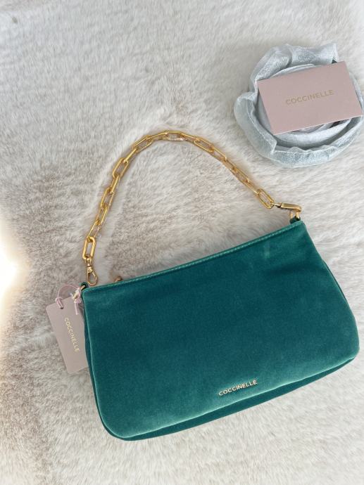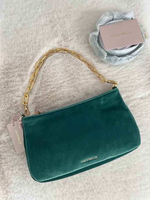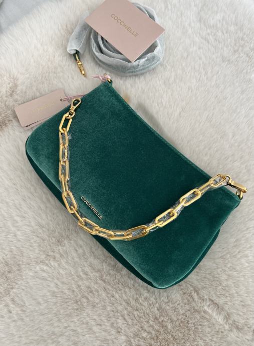 Uz torbu dolazi i dugi kožni zeleni remen za crossbody nošenje.