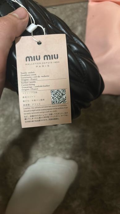 Dolazi s originalnom Miu Miu kutijom i zaštitnom vrećicom u praškastu ružičastoj boji. Torbica je nova, ima još uvijek pričvršćenu originalnu etiketu s informacijama o proizvodu.