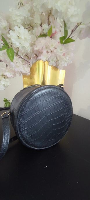 Prodajem crnu žensku okruglu torbicu za nošnju preko tijela. Korištena dvaput očuvana. Šaljem putem Box Now.