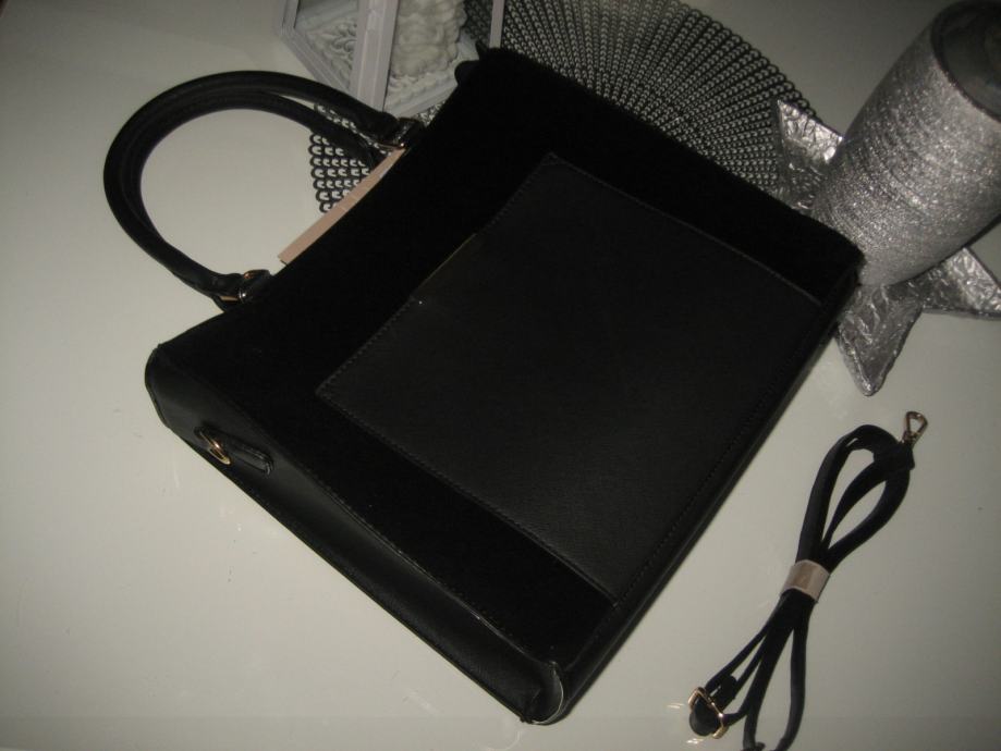 CRNA TORBA KOMBINACIJA PLIŠA I KOŽE - NOVO