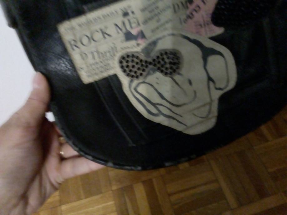 Povoljno prodajem nošenu crnu torbu sa zanimljivim bež uzorkom i s više pretinaca od umjetne kože.