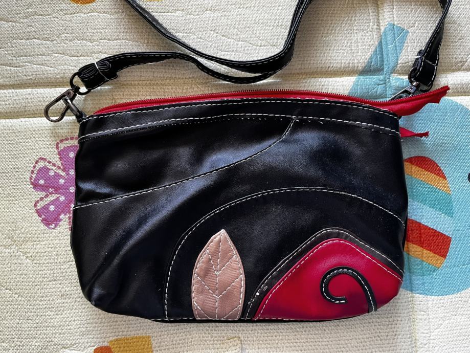 Crno crvena torbica , trebalo bi zamijeniti cif, ja sam je nosila bez njega.