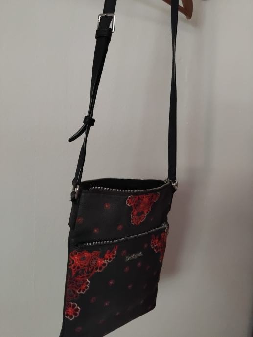 Potpuno nova torbica,crna sa cvjetnim uzorkom,podesiva ručka...V 30,Š 24