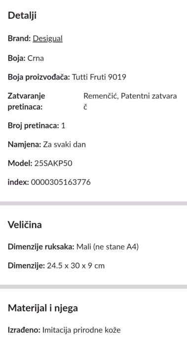 Desigual ruksak, kupljen prije par mjeseci, malo nošen i odlično očuvan. Prodajem jer mi ne paše dimenzija, više sam za sitnije torbe.