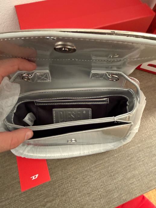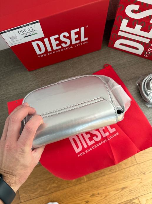 Prodajem novu Diesel torbicu s etiketom. Torbica dolazi u kombinaciji srebrne i crvene boje s prepoznatljivim Diesel detaljima. Ima praktičan dizajn s metal ukrasom i remenom koji se može nositi na više načina. Dolazi s originalnom kutijom, zaštitnom vrećom i pratećim priborom.