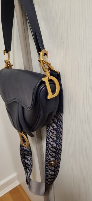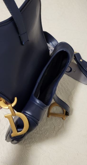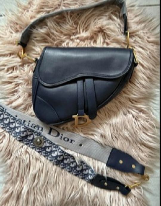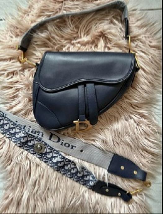 Kopija Dior Saddle torbica, kao nova, stavljena kratko dva puta, kvalitetna i čvrsta kopija s dva remena. Tamno plava boja, skoro crna.