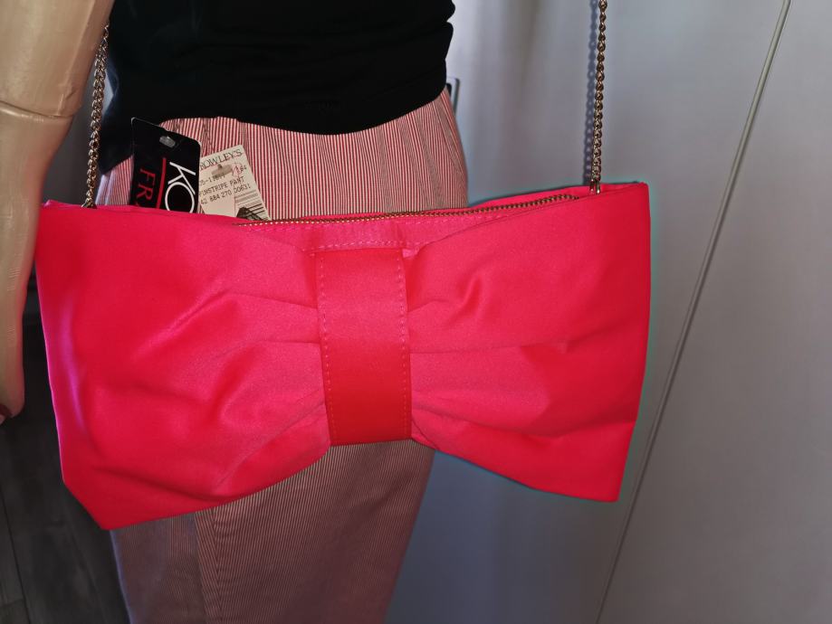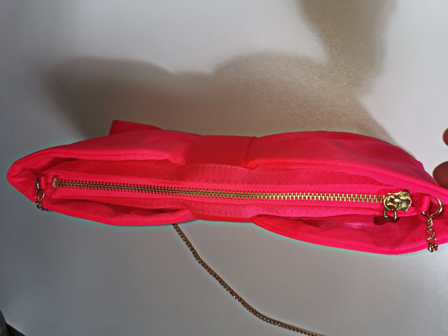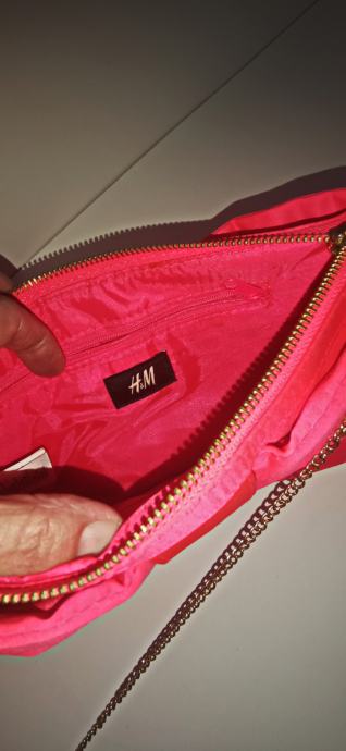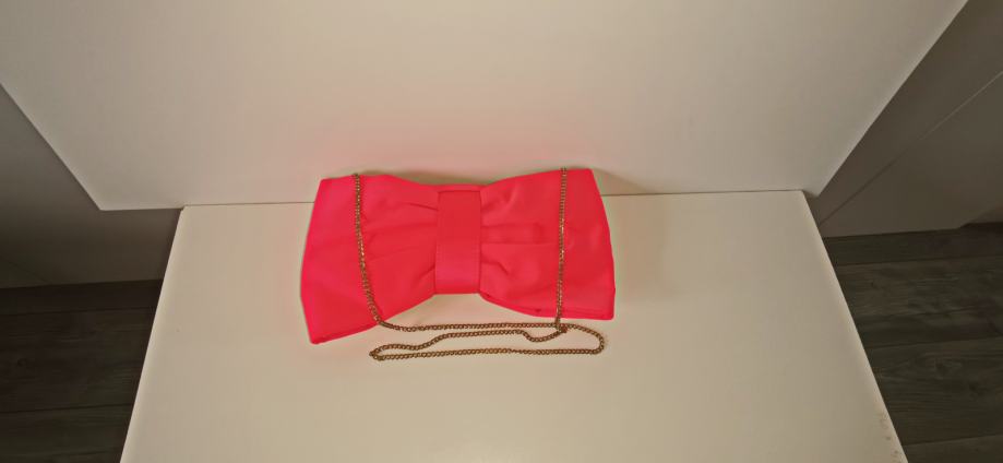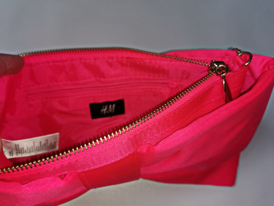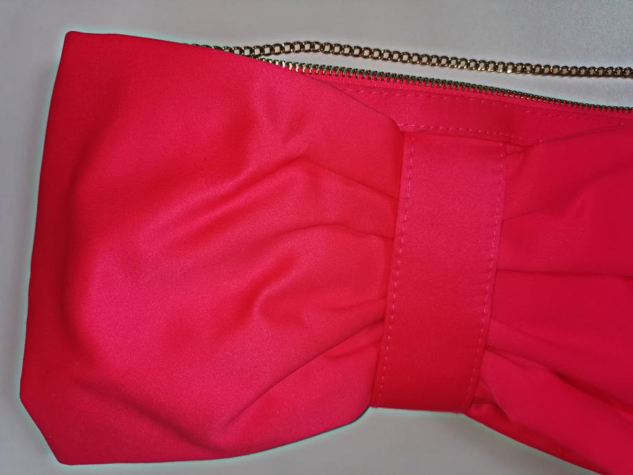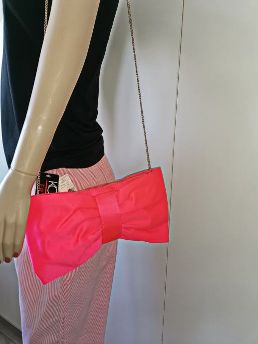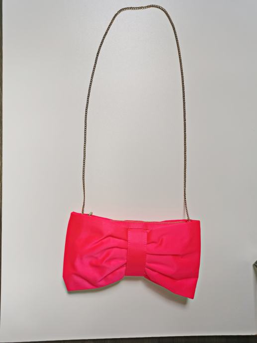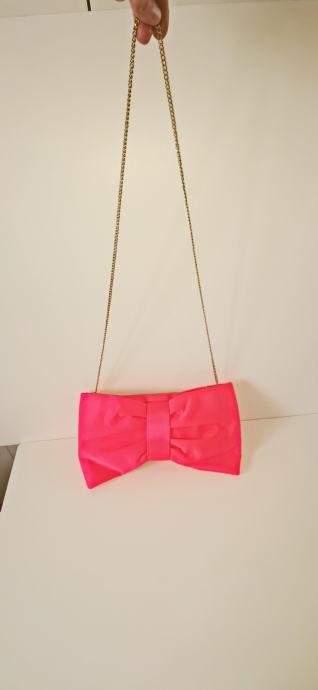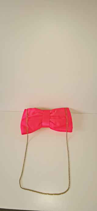 Divna elegantna roza satenska torba - mašna - sa dugim zlatnim lancem, H&M
