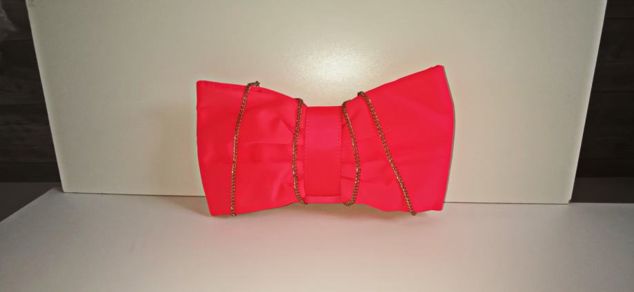 Divna elegantna roza satenska torba - mašna - sa dugim zlatnim lancem