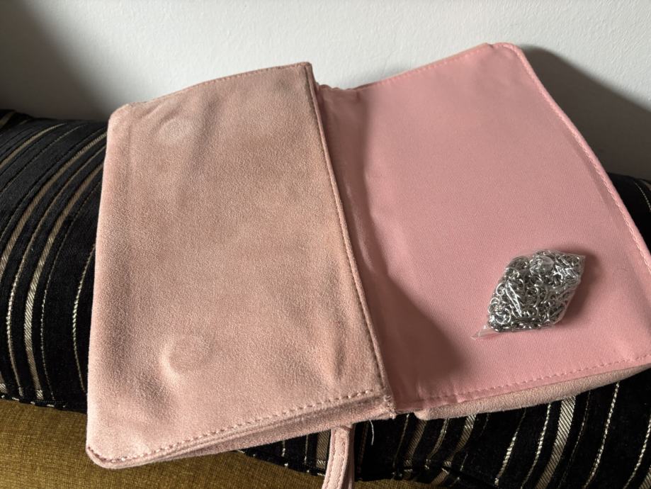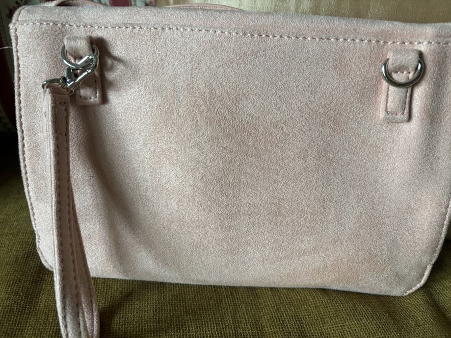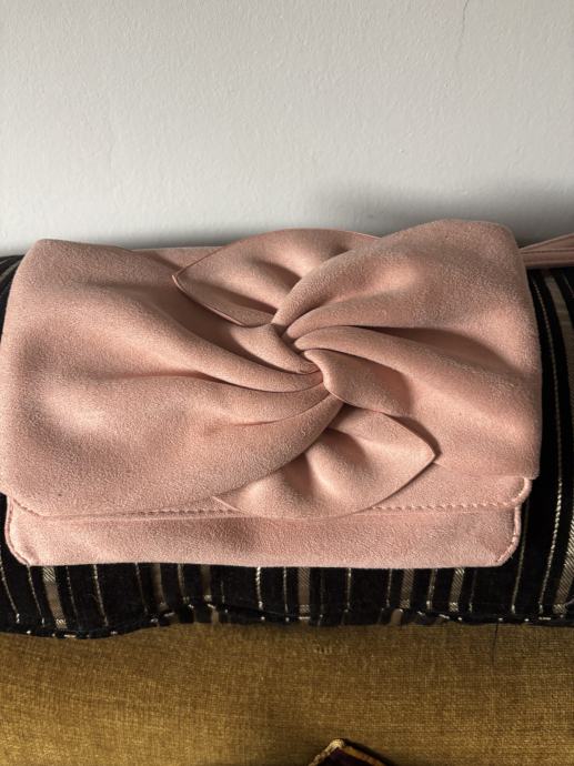 Elegantna njezno rozna torbica , brusena umjetna koza, jednom koristena