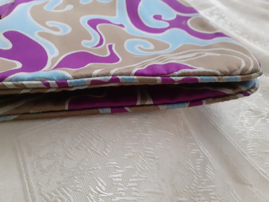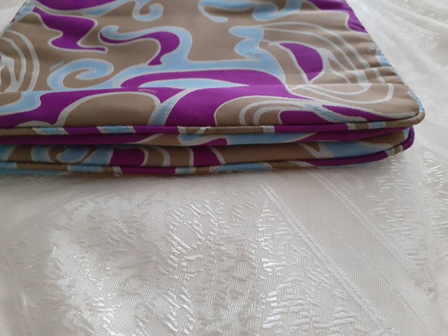 Platno u nijansama ljubičaste, baby plave i bež. Poklopac na preklop