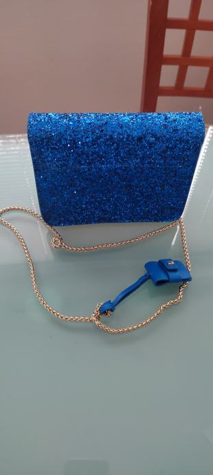 Prodajem Furla cocktail šljokičastu torbicu, denver plave boje. Nošena jednom za svečanu priliku na par sati, u besprijekornom stanju.