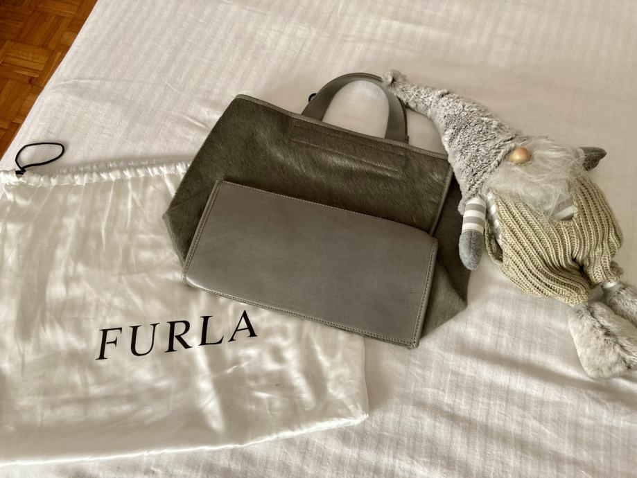 Furla ručna torba od ponijeve dlake. Dimenzije: dužina dna 31,5cm, širina dna 16,5 cm ,visina 29cm, širina do 30cm.