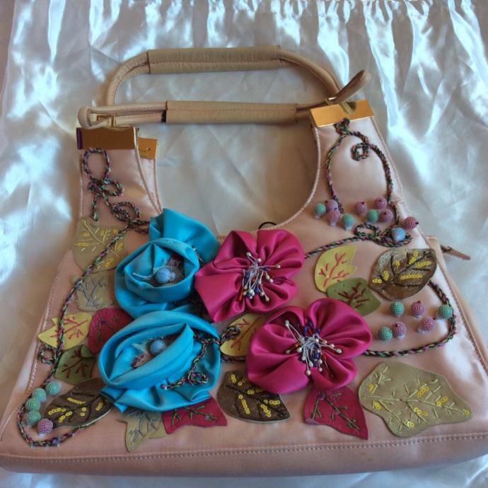 Fina, presavršena dizajnerska torbica u kombinaciji svile i kože, jako skupo plaćena.