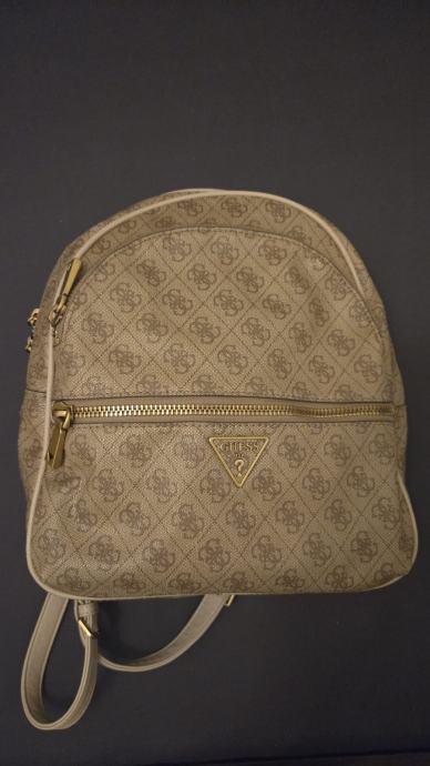 Prodajem Guess ruksak u bež boji s prepoznatljivim logotipom brenda. Ruksak ima karakterističan uzorak s ponovljenim Guess logom po cijeloj površini. Opremljen je s dva odjeljka - gornji se zatvara na zatvarač, a ispred se nalazi dodatni džep također na zatvarač. Metalni detalji i okovi su u zlatnoj boji. Ruksak ima podesive naramenice i praktičnu ručku na vrhu. Kompaktan je i praktičan za svakodnevnu uporabu. Samo primopredaja Zagreb