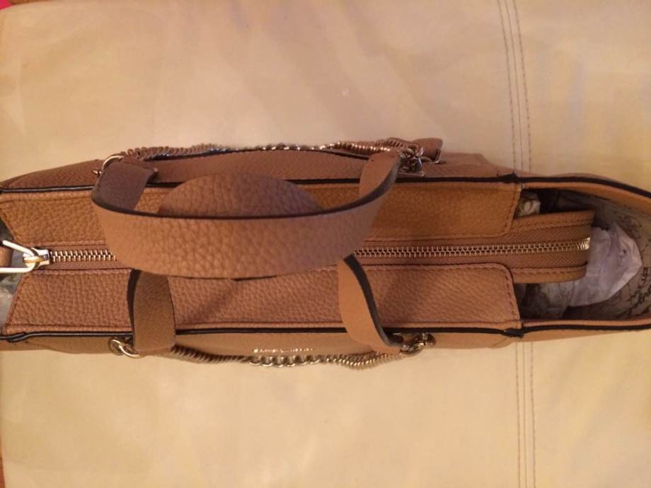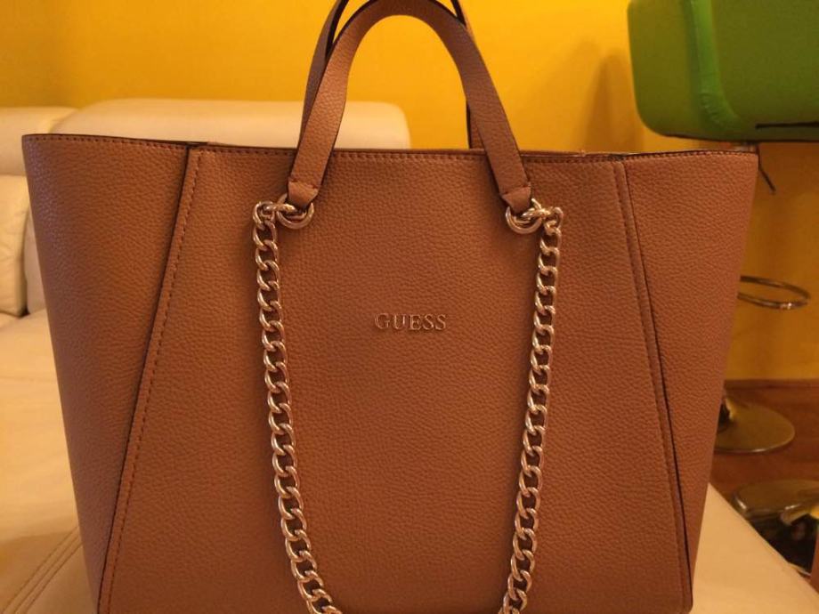 Prodajem prekasnu smeđu žensku Guess Nikki Chain Tote torbu. Torba je kao nova, vrlo malo nošena i bez oštećenja. Kupljena je u CITY centru one u siječnju 2017., Guess dućan. Torba ima i svoju vrećicu. Dimenzije torbe su 45x30x16 cm. Prednost kupcima Zagreb Zapad.