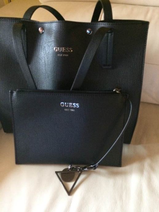 Prodajem Guess torbu. Uz nju dolazi i manja crna torbica. Ručke na velikoj torbi su oštećene, sve ostalo je kao novo.
