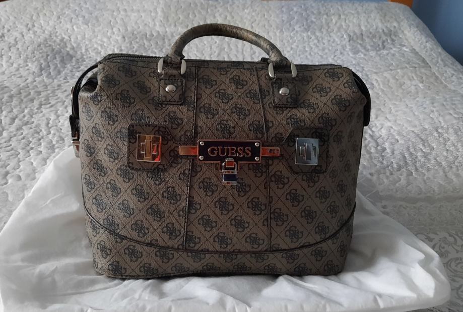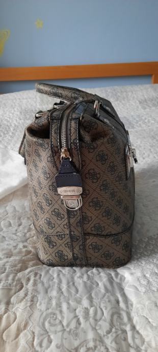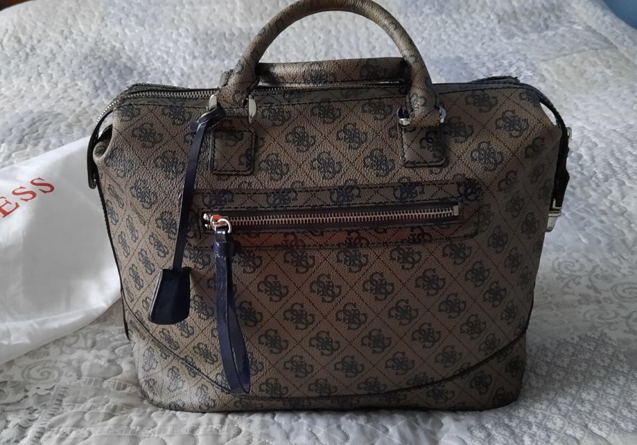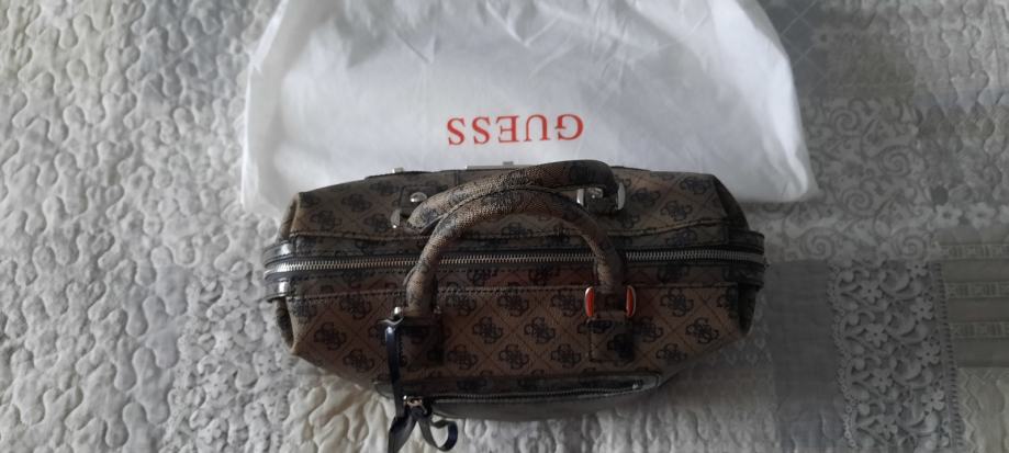 Nova Guess torba. Kao kovčežić dimenzija 37 cm × 26 cm. Po potrebi se može proširiti u gornjem dijelu. Stane mnogo stvari pa i manja fascikla.