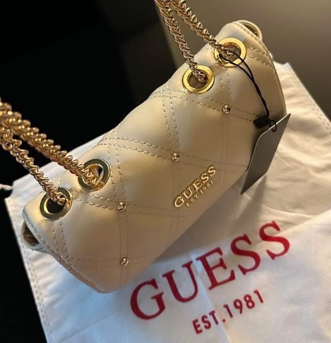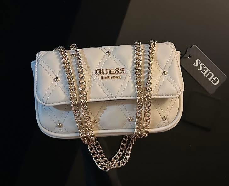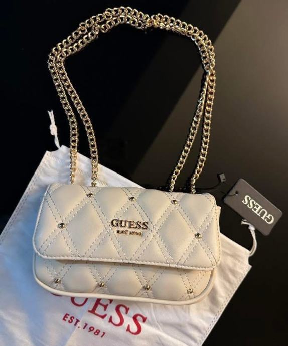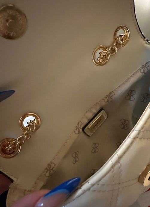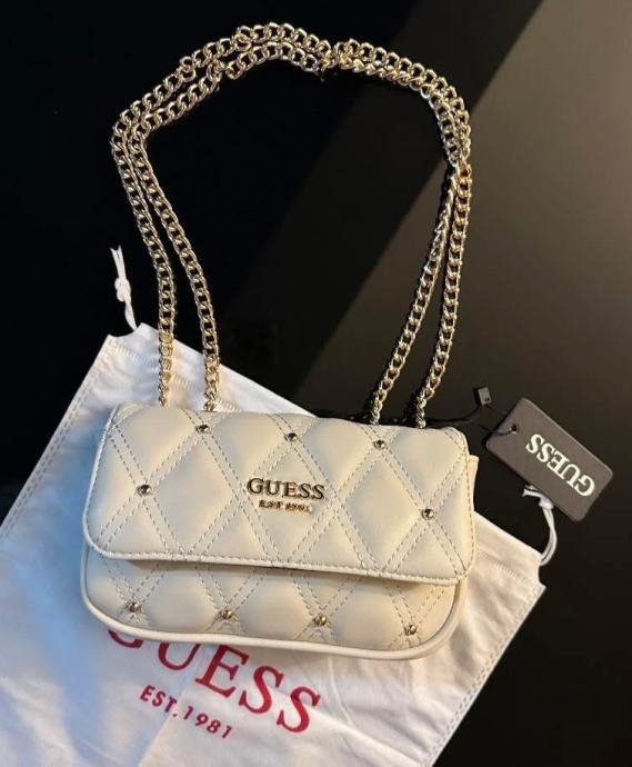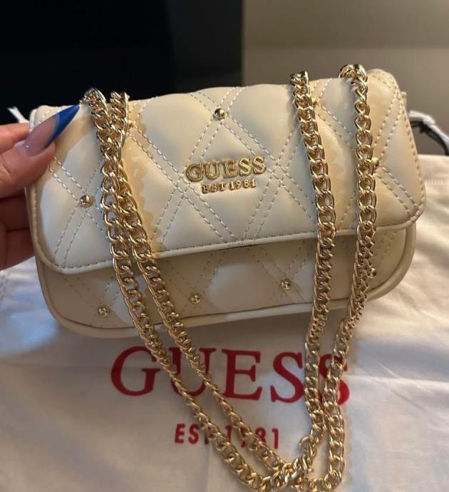 Prodajem novu Guess torbu s etiketom.Torba je bež boje s prošivanim uzorkom i zlatnim detaljima, ima elegantni lanac za nošenje na ramenu ili preko tijela. Jako efektna i moderna, idealna za izlaske, ali i za svakodnevne kombinacije.