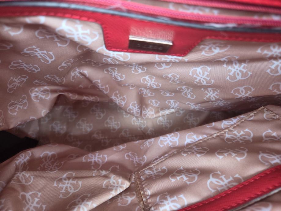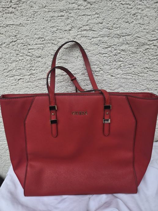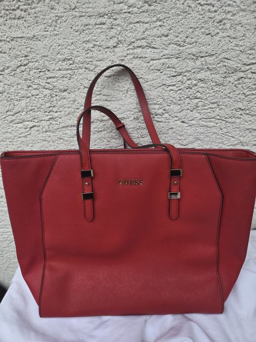 Guess ženska torbica večih dimenzija za nositi o rame - širina dna 34, širina po sredini i vrh 40 cm, visina 30 cm, dubina dna 14 cm, okomita visina ručki 18 cm.....nije puno korištena, uredni interijer........umjetni materijali........pogledajte i ostale moje oglase