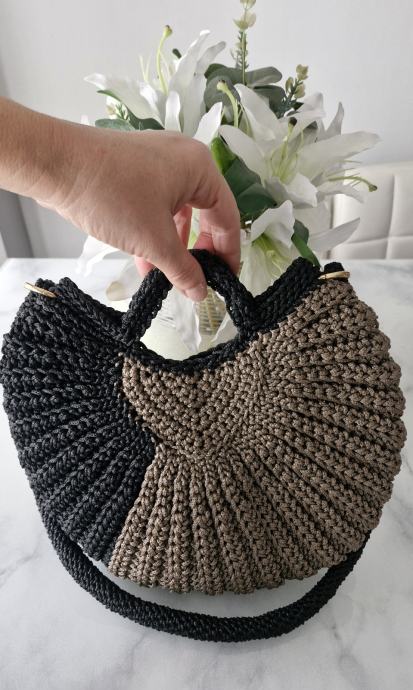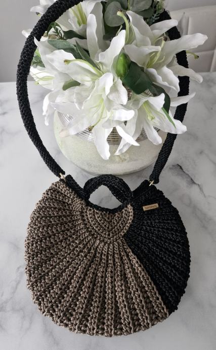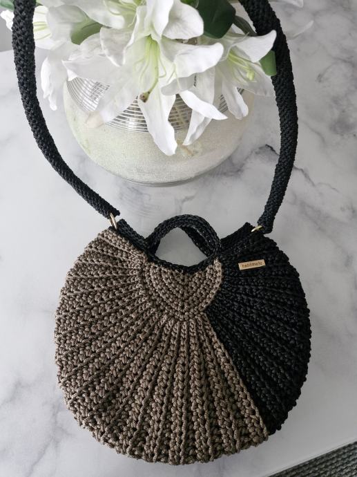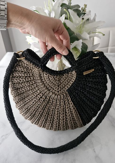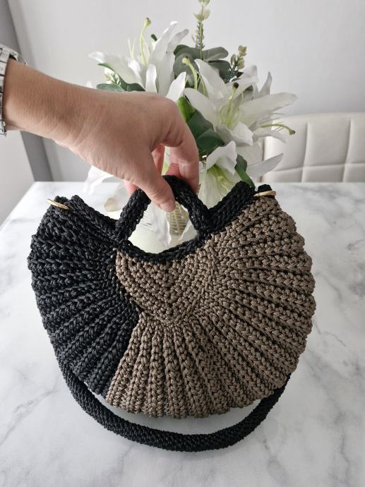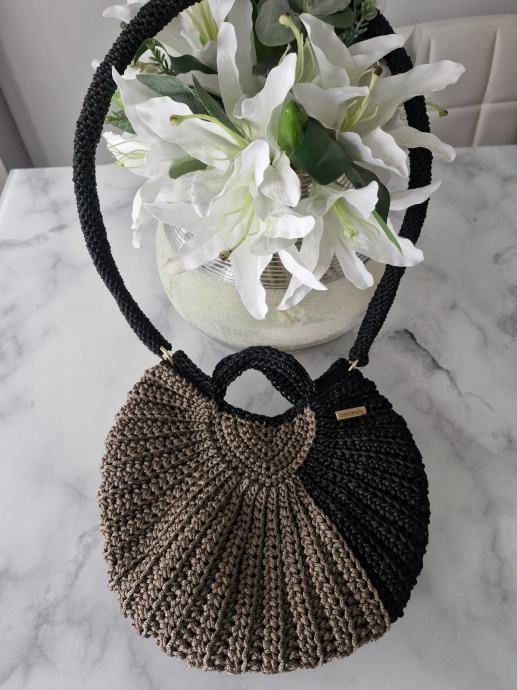 Prodajem potpuno novu heklanu torbu s originalnom etiketom u elegantnoj kombinaciji crne i smeđe boje. Jedinstveni polukružni dizajn s pletenom ručkom savršen je modni dodatak za svaku priliku. Torba je ručno rađena s finim detaljima i metalnim znakom.