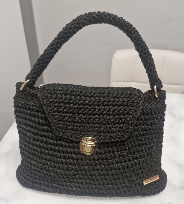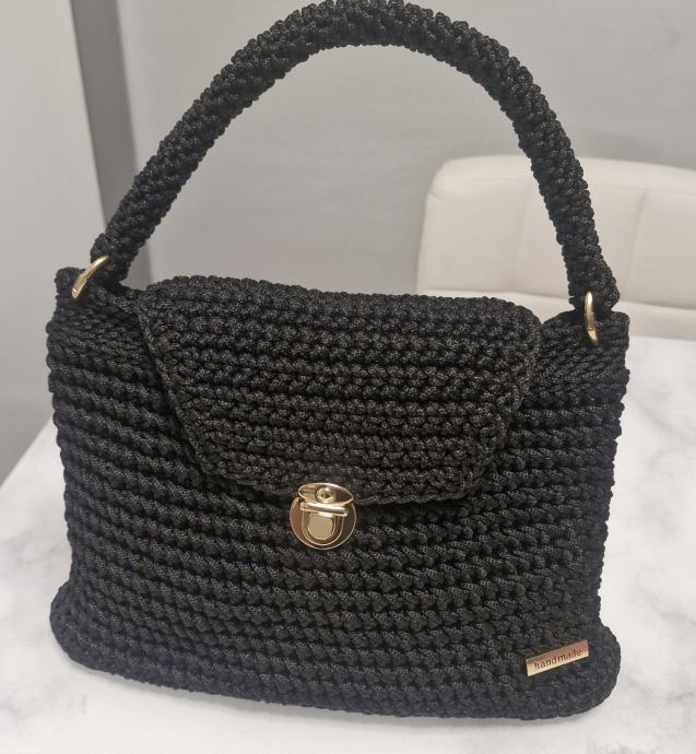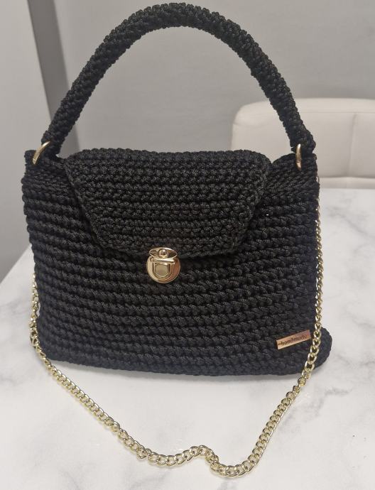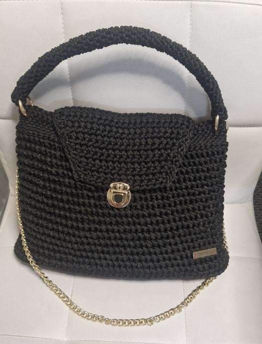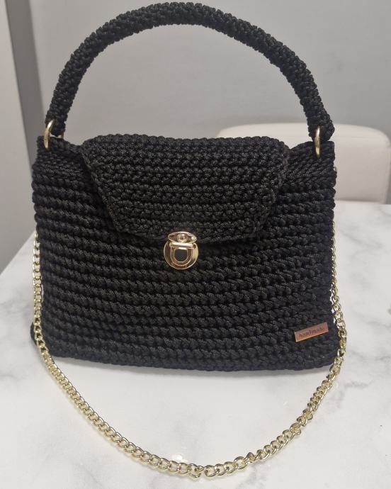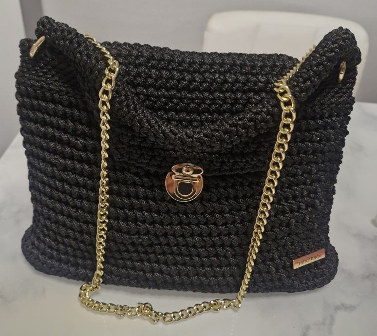 Prodajem potpuno novu elegantnu heklanu torbu crne boje s ukrasnim zlatnim lancem. Torba ima praktičnu ručku i metalno kopčanje koje joj daje moderan izgled. Ručno izrađen modni dodatak savršen za sve prilike, s dovoljno prostora za sve vaše potrebe.