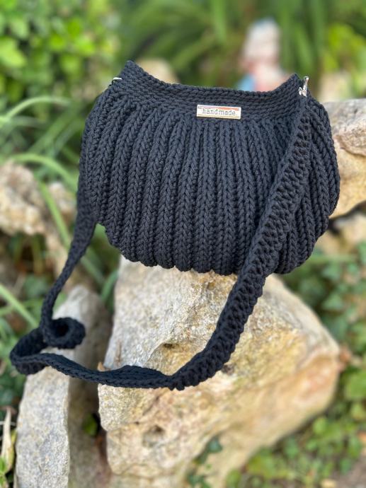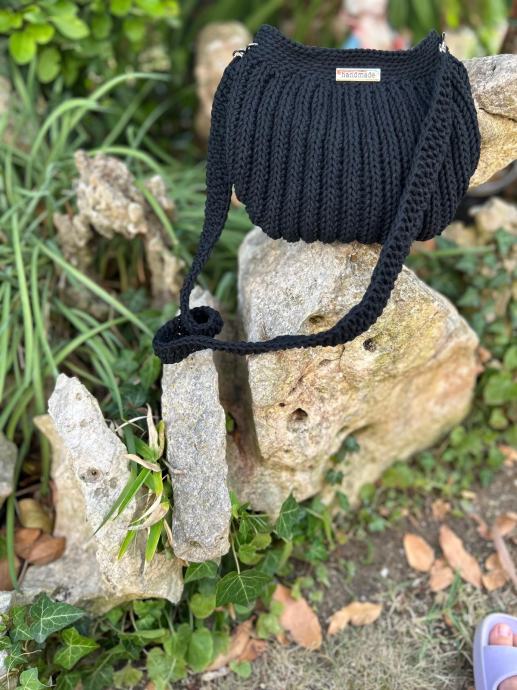 Heklana torbica, ručni rad, crna