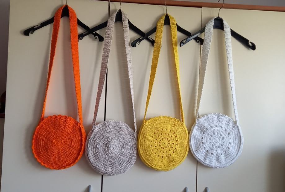 Prodajem unikatne heklane torbice, izrađene u više boja i modela, ručno rađene, svaka torbica ima podstavu s džepićem. Promjer okruglih torbica je 26 cm, dužina ručke 110 cm. Sve ostale mjere šaljem na upit. Slanje isključivo poštom nakon vidljive uplate na račun.