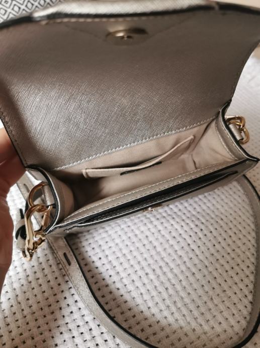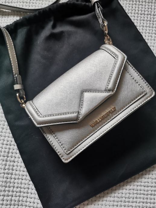 Srebrna mala KL torbica, nošena 2 puta, u savršenom stanju, bez oštećenja.