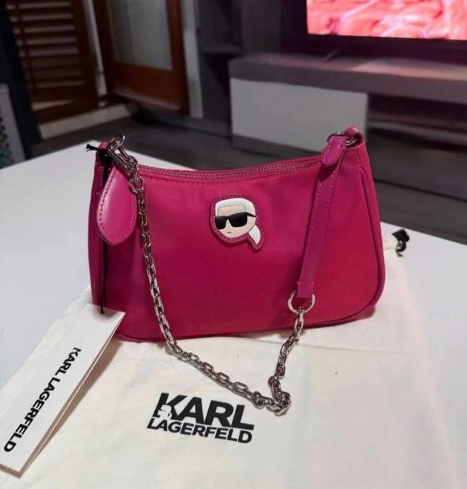 Prodajem potpuno novu original Karl Lagerfeld torbu, s etiketom i dust bag vrećicom. Prekrasna upečatljiva roza boja s prepoznatljivim Karl motivom i metalnim lancem, idealna za dnevne i večernje kombinacije.