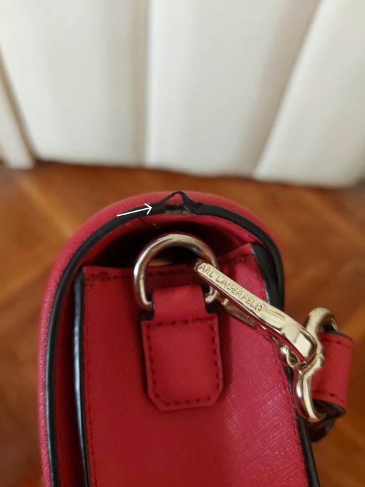 Jedino malo oštećenje sa strane torbice, označeno na slici sa strelicom