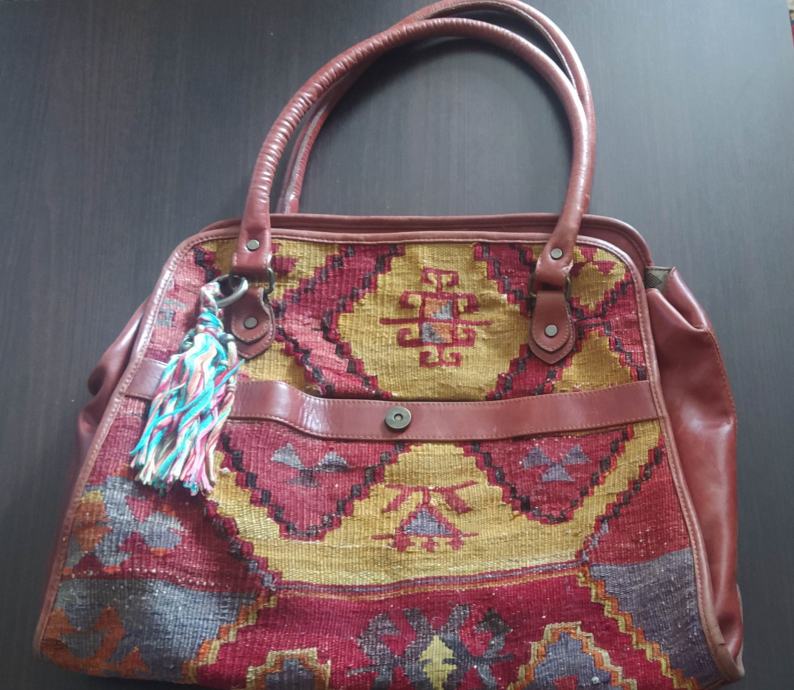 Prodajem, atraktivnu torbu izrađenu od tkanja i kože tzv. KILIM torba.