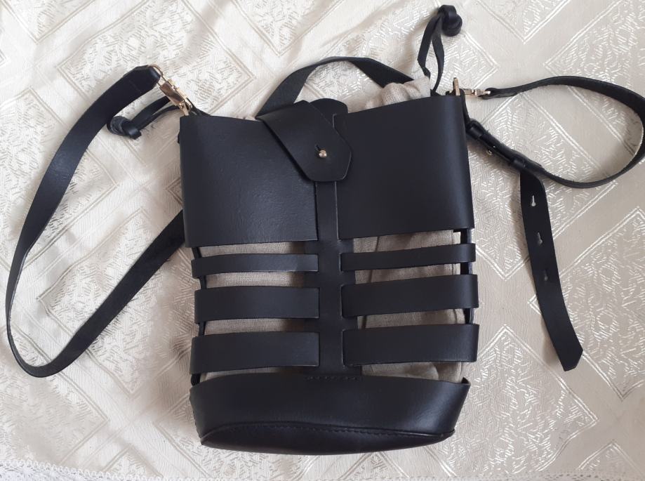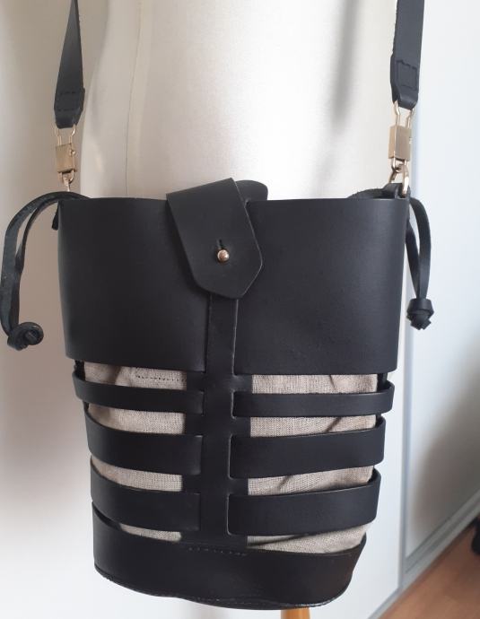 Vrlo atraktivna kožna torbica s platnenom vrećicom unutra .