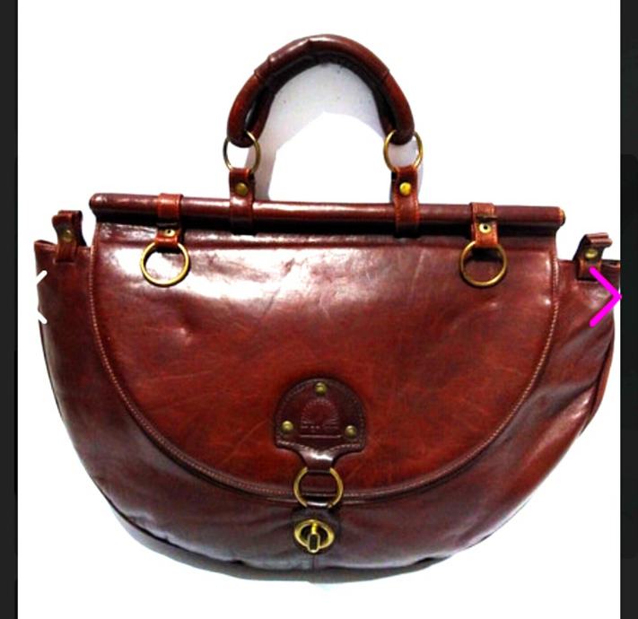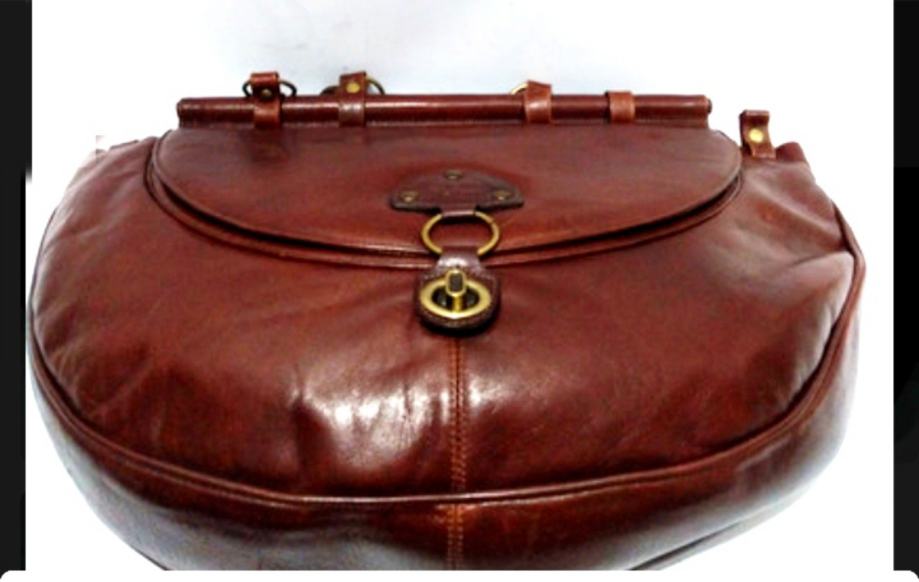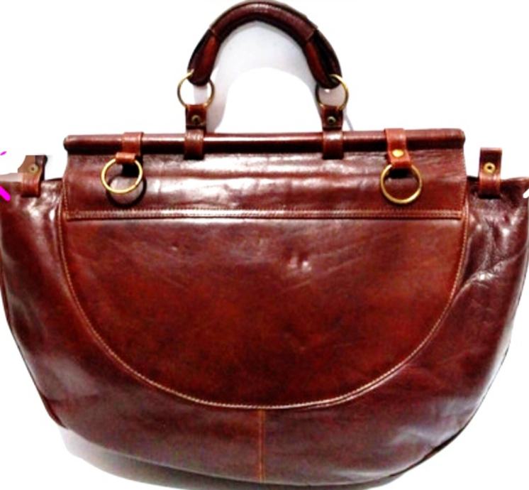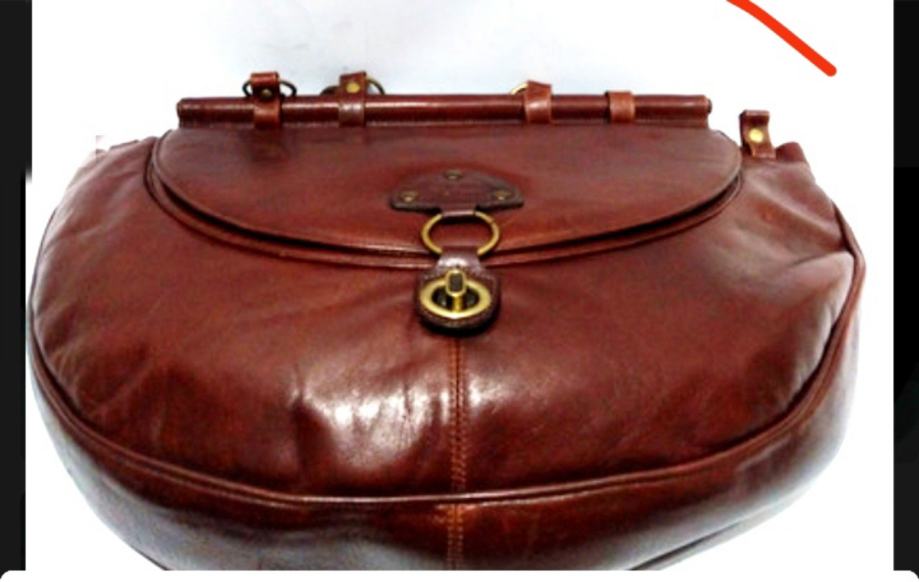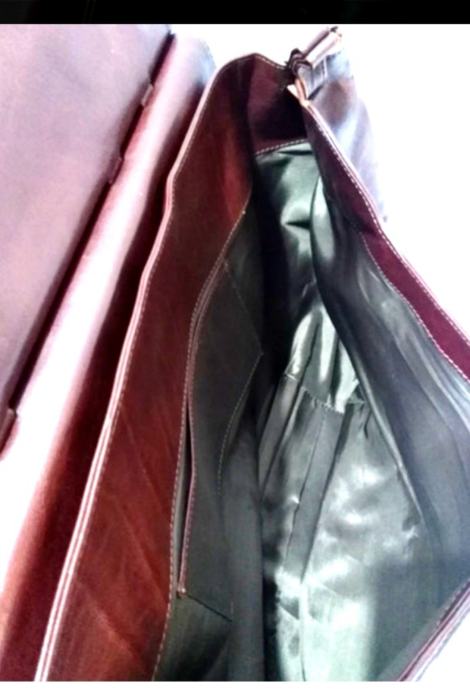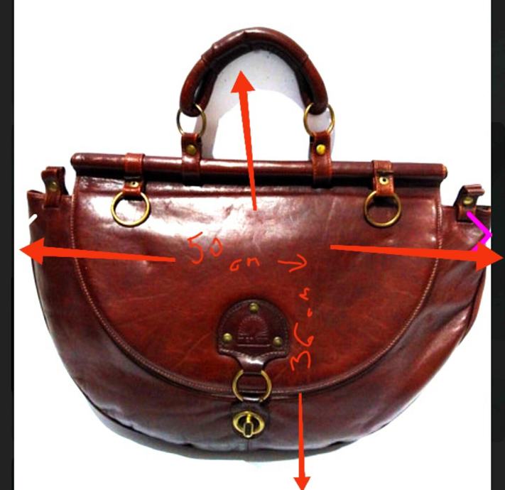 Neobične vintage forme sa robusnim dizajnom i prečkom kao kod muških BUSSNESS torbi boja MAHAGONI svjetlija masivna mesingana kopča i robusne mesingane halke na spojevima bez vanjskih džepova i odjeljaka,nema oštećenja,velika 50cm X 36cm X15 cm.