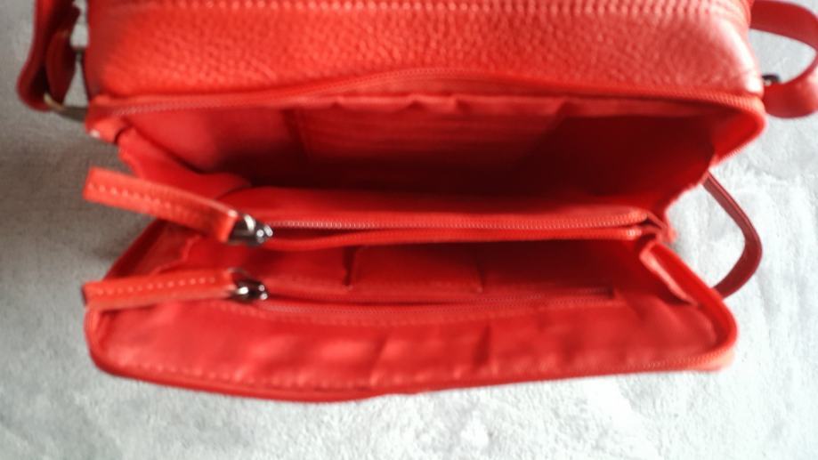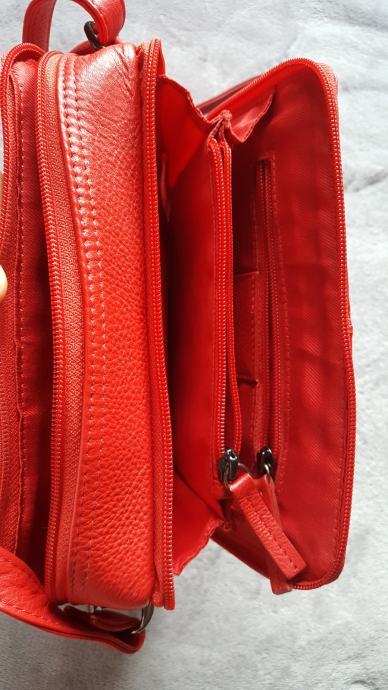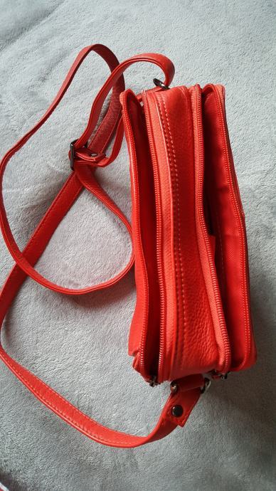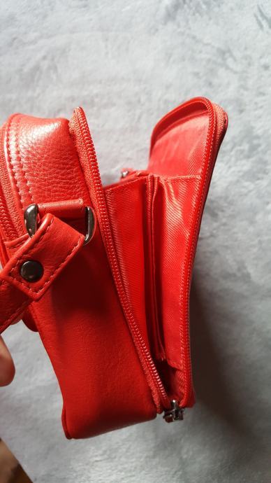 Prodajem par puta nosenu koznu torbicu visina 18 cm,sirina 23 cm,sa puno pretinaca ,vrlo kvalitetna, prekrasne crvene boje